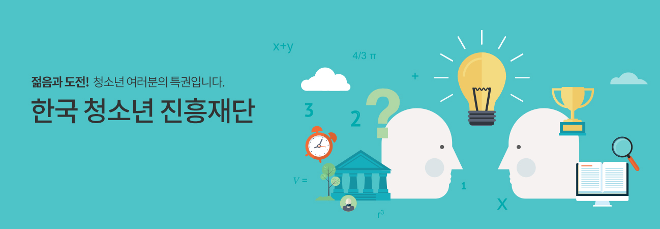 위 사이트의 저작권의 모든 부분은 (사)한국청소년진흥재단에 있습니다. 본 사이트는 교육ㆍ프로그램 운영 목적의 청소년관련 사이트입니다.